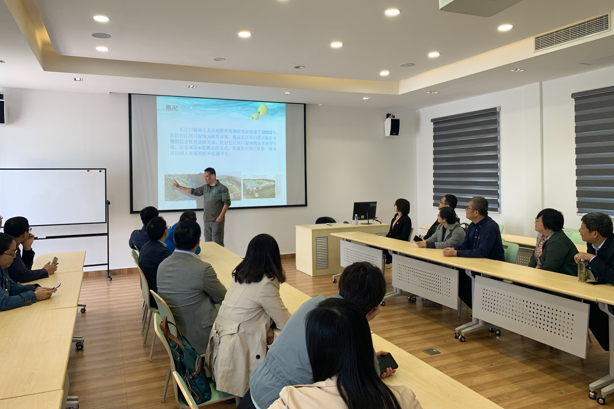 隨后,大家來到我校長江口濕地生態系統野外監測研究站。觀測站負責人劉文亮老師帶領大家參觀了濕地植物培養溫室大棚、崇明本地水生動物標本間和實驗室,隨后以視頻資料向大家講述了我校長江口濕地生態系統野外監測研究站建設歷史和建設成效。通過參觀,大家深刻感受到學校長期服務崇明生態建設的重要成效以及科研工作者們不畏艱苦、扎根基層、把論文寫在祖國大地上的“蘆葦精神”。
