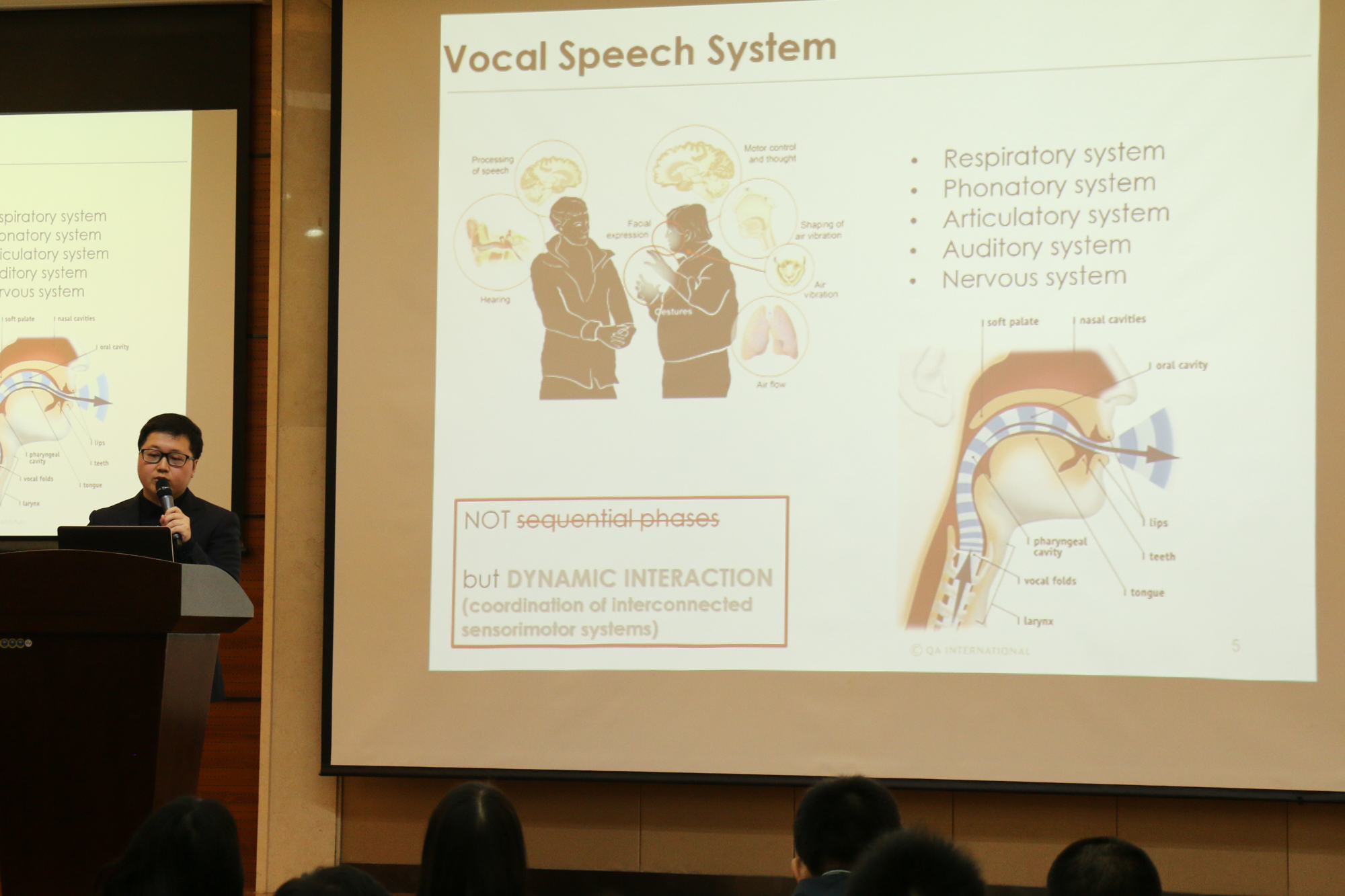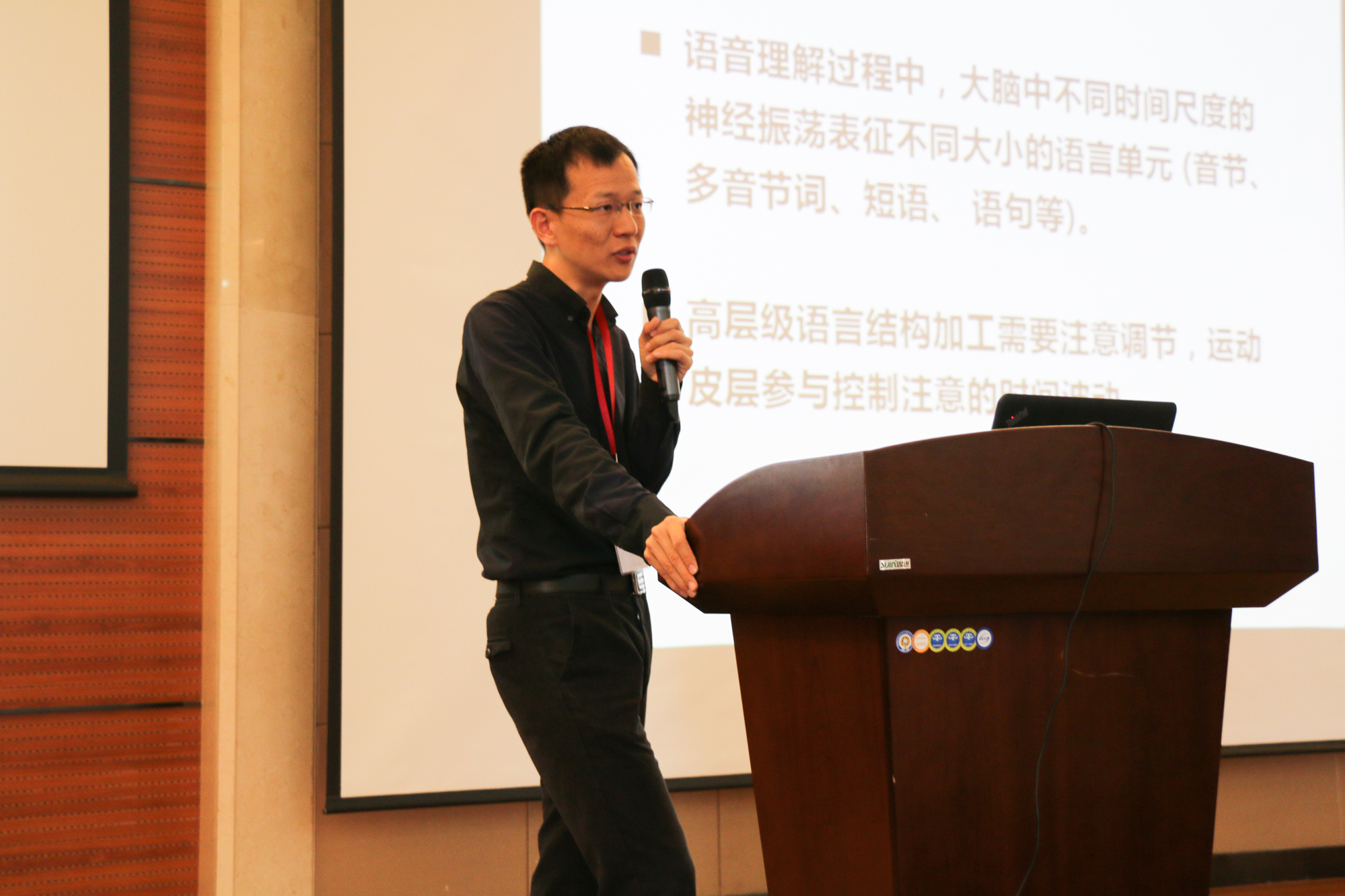 20日上午專題報(bào)告(三)為“語(yǔ)言加工與心理統(tǒng)計(jì)”專場(chǎng)。上海師范大學(xué)教授羅俊龍、華東師范大學(xué)副教授Lily Tao、同濟(jì)大學(xué)副教授蔣曉鳴、浙江大學(xué)研究員戴俊毅進(jìn)行了學(xué)術(shù)報(bào)告,內(nèi)容包括基于鑲嵌漢字任務(wù)進(jìn)行快速分析過(guò)程的加工機(jī)制、雙語(yǔ)語(yǔ)言控制及領(lǐng)域普遍性認(rèn)知功能在語(yǔ)言加工中的作用、言語(yǔ)韻律和說(shuō)話者嗓音在編碼人際立場(chǎng)中的作用,以及貝葉斯數(shù)據(jù)分析方法的優(yōu)勢(shì)。