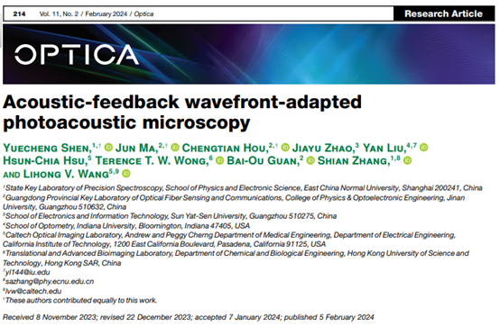 Optica 在線刊發張詩按教授和沈樂成教授團隊研究成果