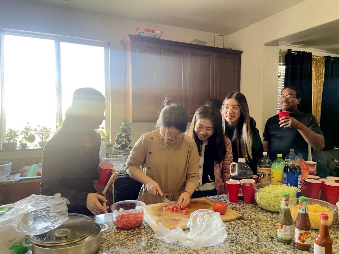 經濟與管理學院碩士生汪欣冉和同學們一起為寄宿家庭準備了中國節日的必備美食——餃子。“在和面、包餃子的過程中,我向他們介紹了餃子的歷史和中國的飲食文化。希望通過有參與感的體驗,讓他們對中國文化有更深刻的了解。”