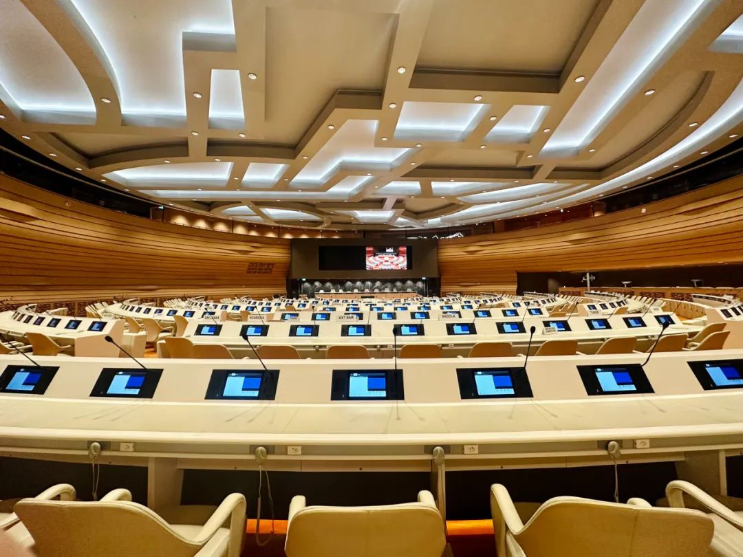 參訪學生團隊在聯合國會議室中開展了模擬聯合國活動。外語學院本科生饒斯羽談道:“各國就一事項達成協議是十分困難的,包含了太多利益的取舍和辯論的技巧。聯合國給予了每個國家平等發聲的權利,致力于合作和達成共識,是十分了不起的存在。”