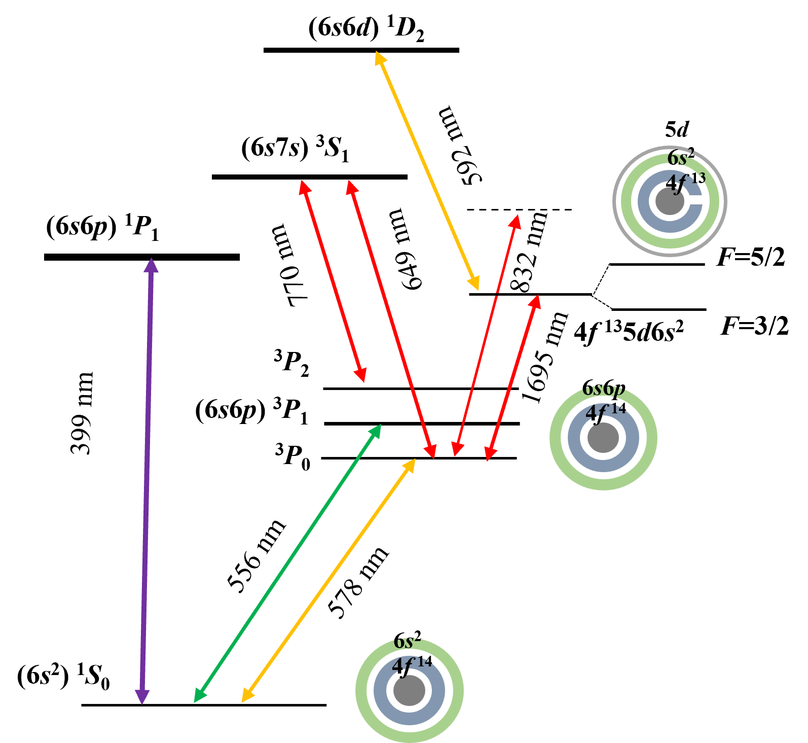 圖1.內殼層鐿原子光鐘相關能級示意圖
