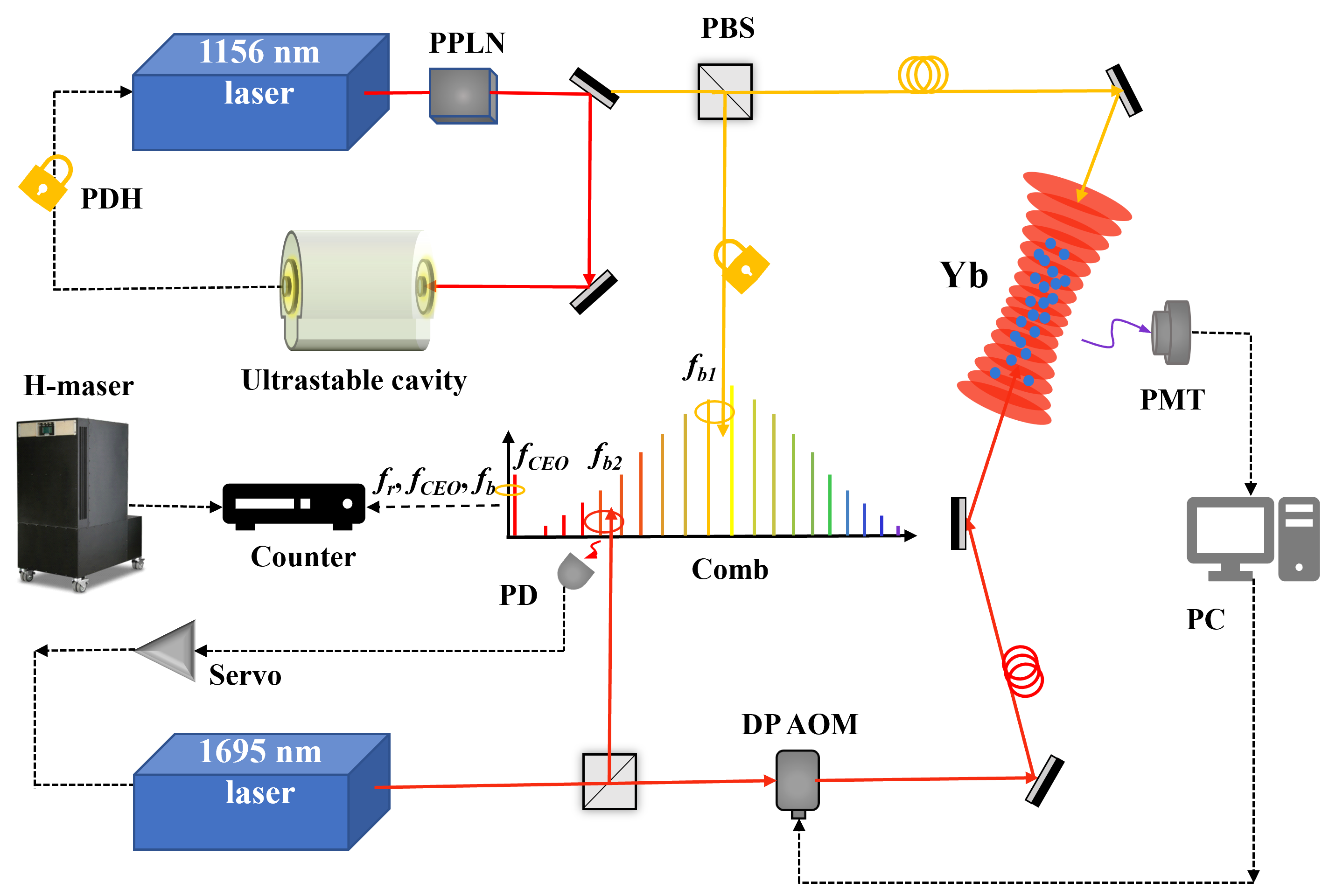 圖2.內殼層鐿原子光鐘實驗裝置示意圖