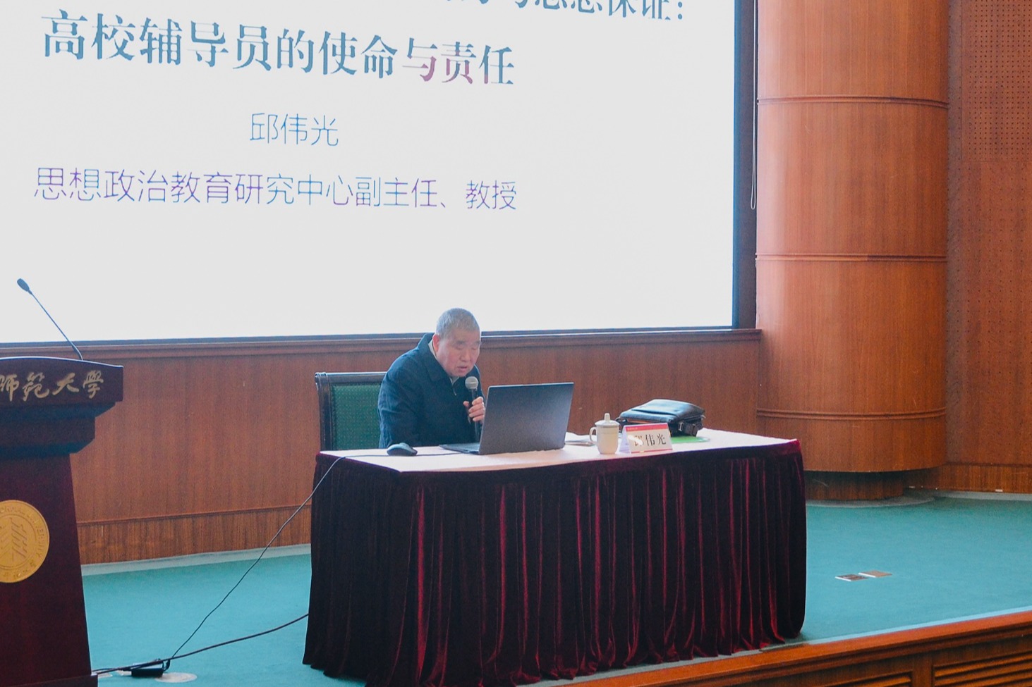 校思想政治教育研究中心副主任、馬克思主義學(xué)院特聘教授邱偉光作輔導(dǎo)報(bào)告