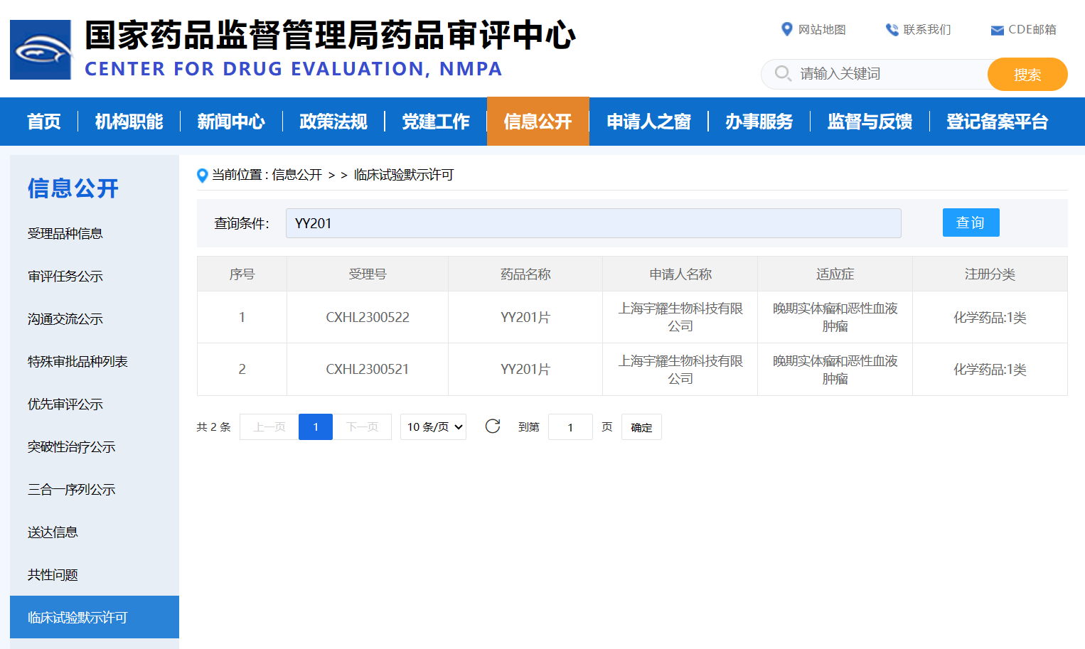 YY201臨床試驗申請獲得國家藥品監督管理局和美國食品藥品監督管理局正式批準