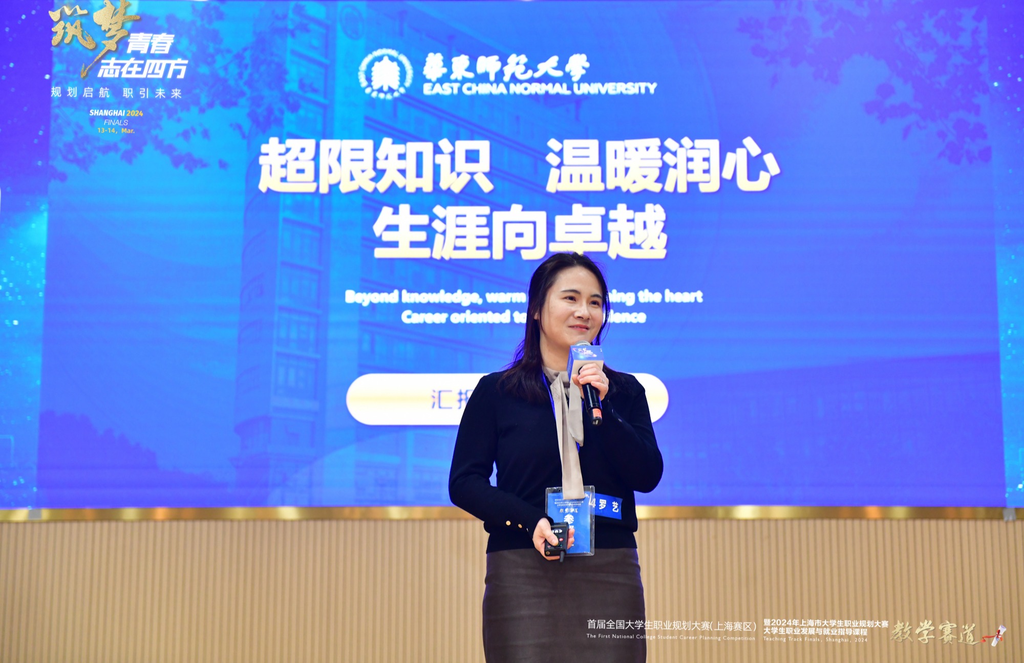 華東師大地理科學學院羅藝老師獲得大賽金獎、季軍的成績。她以“超限知識,溫暖潤心,生涯向卓越”為主題,傳達了“堅持做有情懷、有格局的生涯引領,打造具有 ‘華東師大特色’的生涯課程”的核心理念,深受評委的認可。