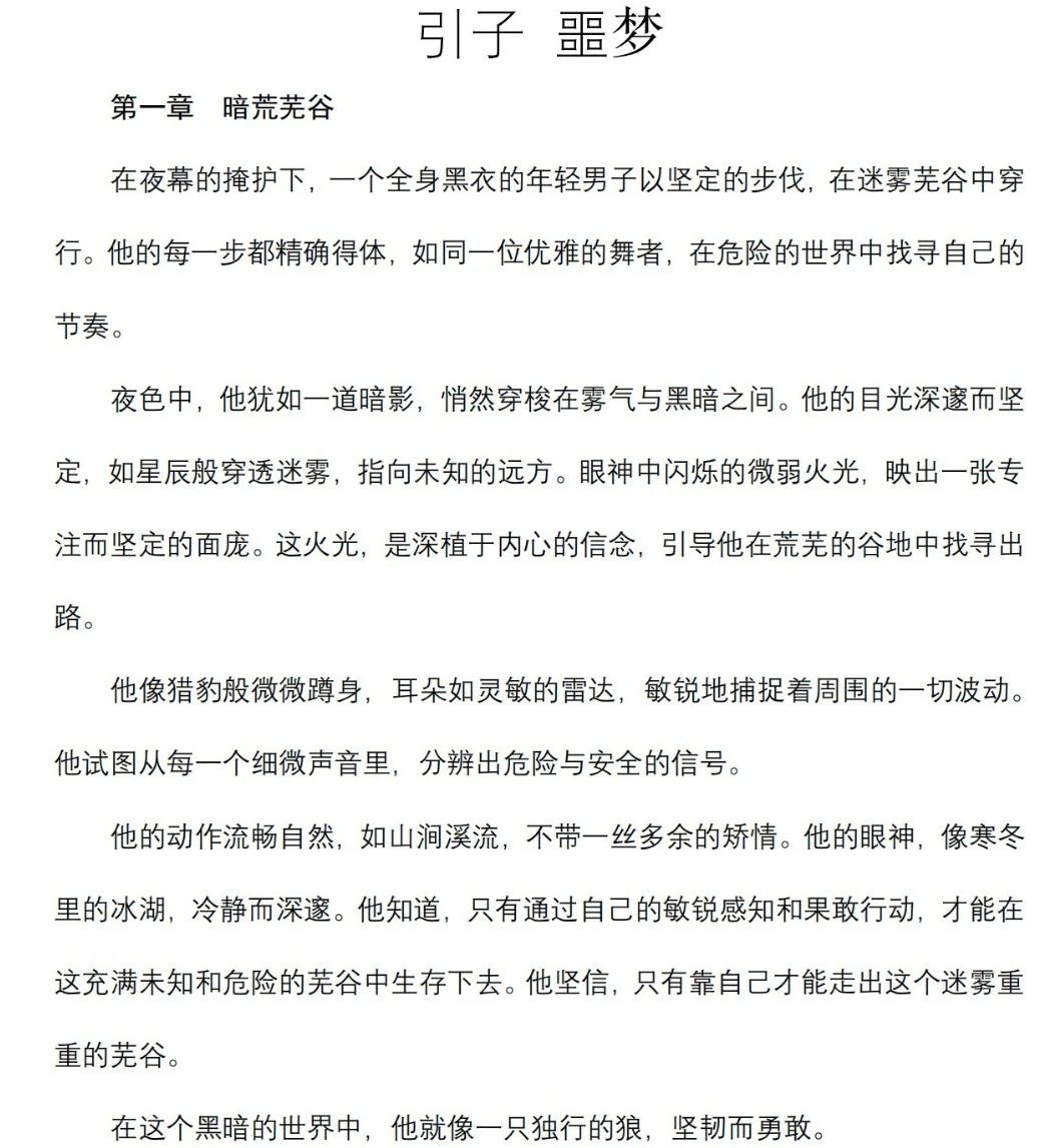 這是目前國內完成的首部機寫為主的長篇中文小說。作為一部探索性的作品,《天命使徒》完成了幾個重要任務:首先驗證了某些國內大模型能夠完成提示詞連續投入,并保持生成質量穩定;此外,確定了提示詞的寫法并積累了必要的提示詞工程經驗;同時建立了簡易可行的生成系統。