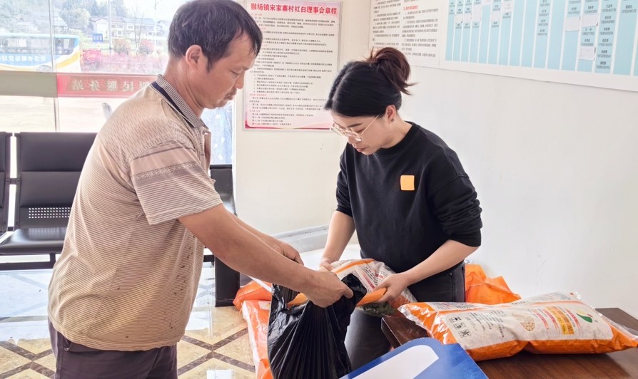 華東師大2022屆馬克思主義基本原理專業畢業生祝魏芳向村民發放大豆種子