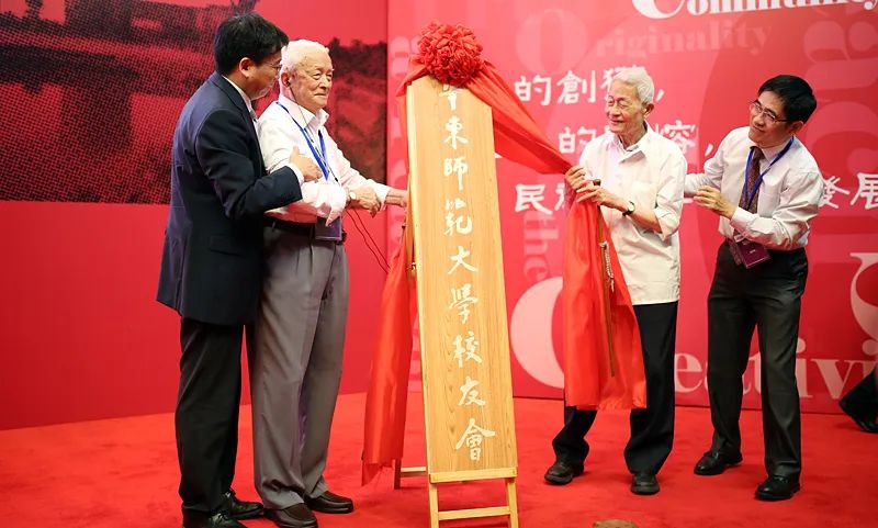 2013年9月,百歲老人施平先生、徐中玉先生為“華東師范大學校友會”揭牌