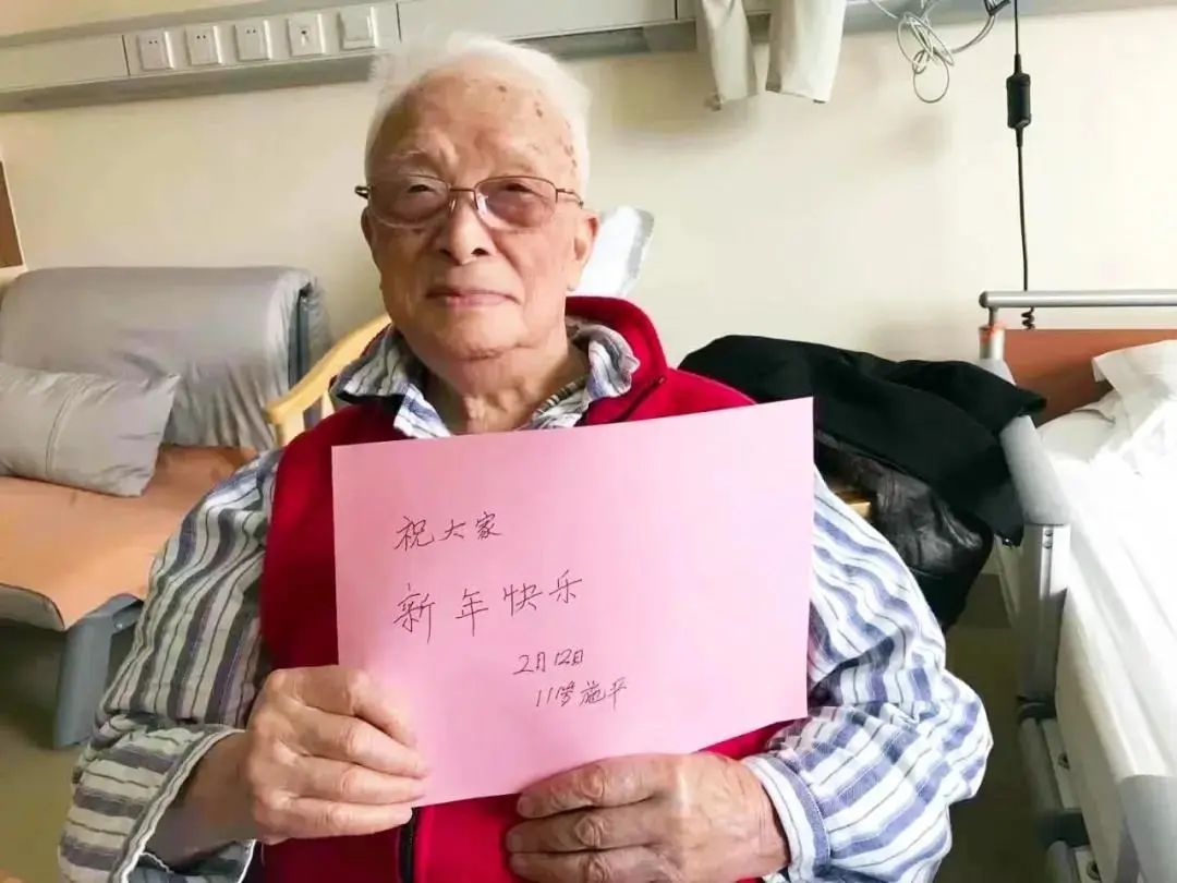 2021年新春佳節,111歲施平在病房向大家問候新年