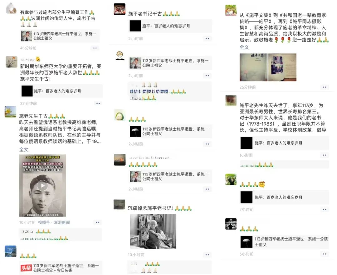 師生校友們對施平老書記逝世表達深切緬懷