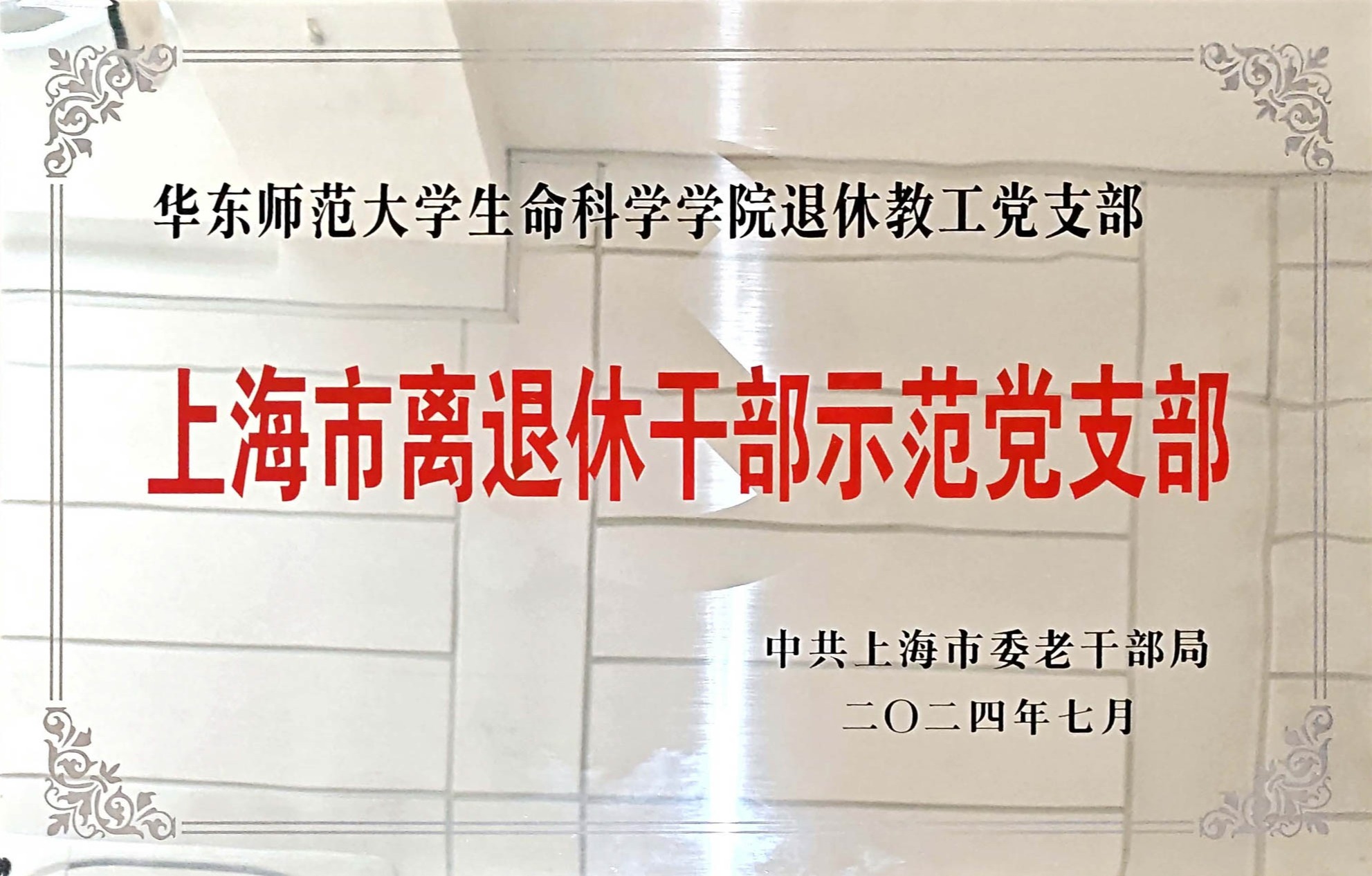 生命科學學院退休教工黨支部獲上海市離退休干部示范黨支部命名
