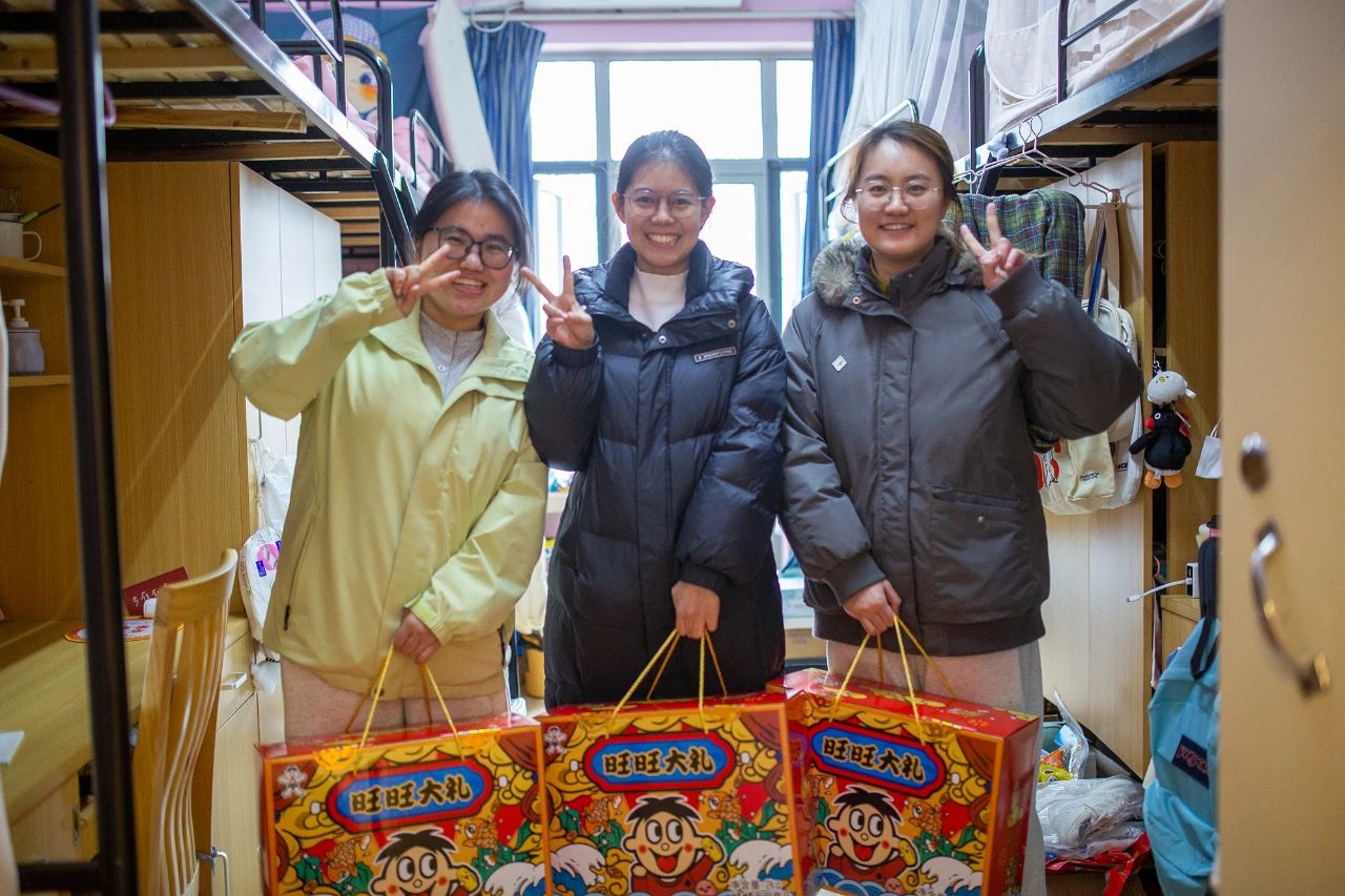 為了讓留校的同學們感受到年的味道、家的溫暖,華東師大還特別為留校同學們準備了一份新年禮包,校領導為同學代表送上了禮包。每一到場師生都領取到了來自師大的幸福“年貨”。