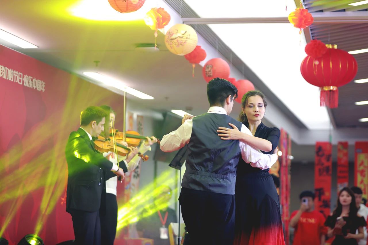 二胡齊奏《戰馬奔騰》以其磅礴的氣勢和激昂的旋律,拉開了同樂會的帷幕。中外學生合作的聲樂二重唱《月牙灣》、后勤工作人員帶來的功夫扇舞蹈《雪龍吟》、留學生帶來的器樂探戈《一步之遙》、教師獨唱《春天的芭蕾》,多才多藝的中外學生和教職員工,用優美動聽的歌聲和歡快的舞步,訴說著對全體師大人的新春祝福和對幸福生活的美好期盼,贏得了全場的熱烈掌聲與歡呼。
