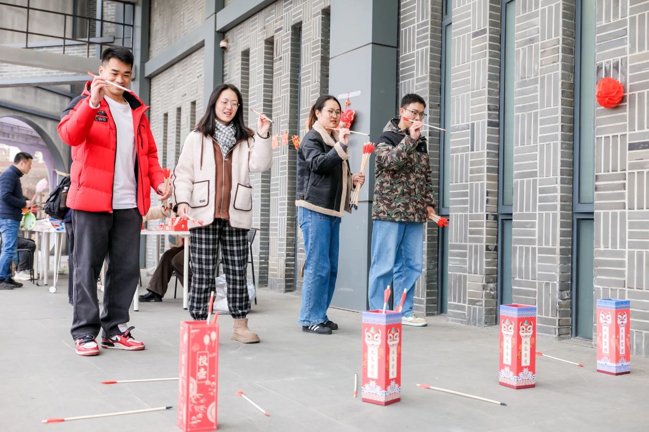 投壺、夾彈珠、猜燈謎、拓印寫福字、寫春聯、剪窗花等傳統民俗活動,同學們沉浸式體驗非遺中國年,在歡樂喜慶的氛圍中感受傳統佳節的文化底蘊及其藝術魅力。