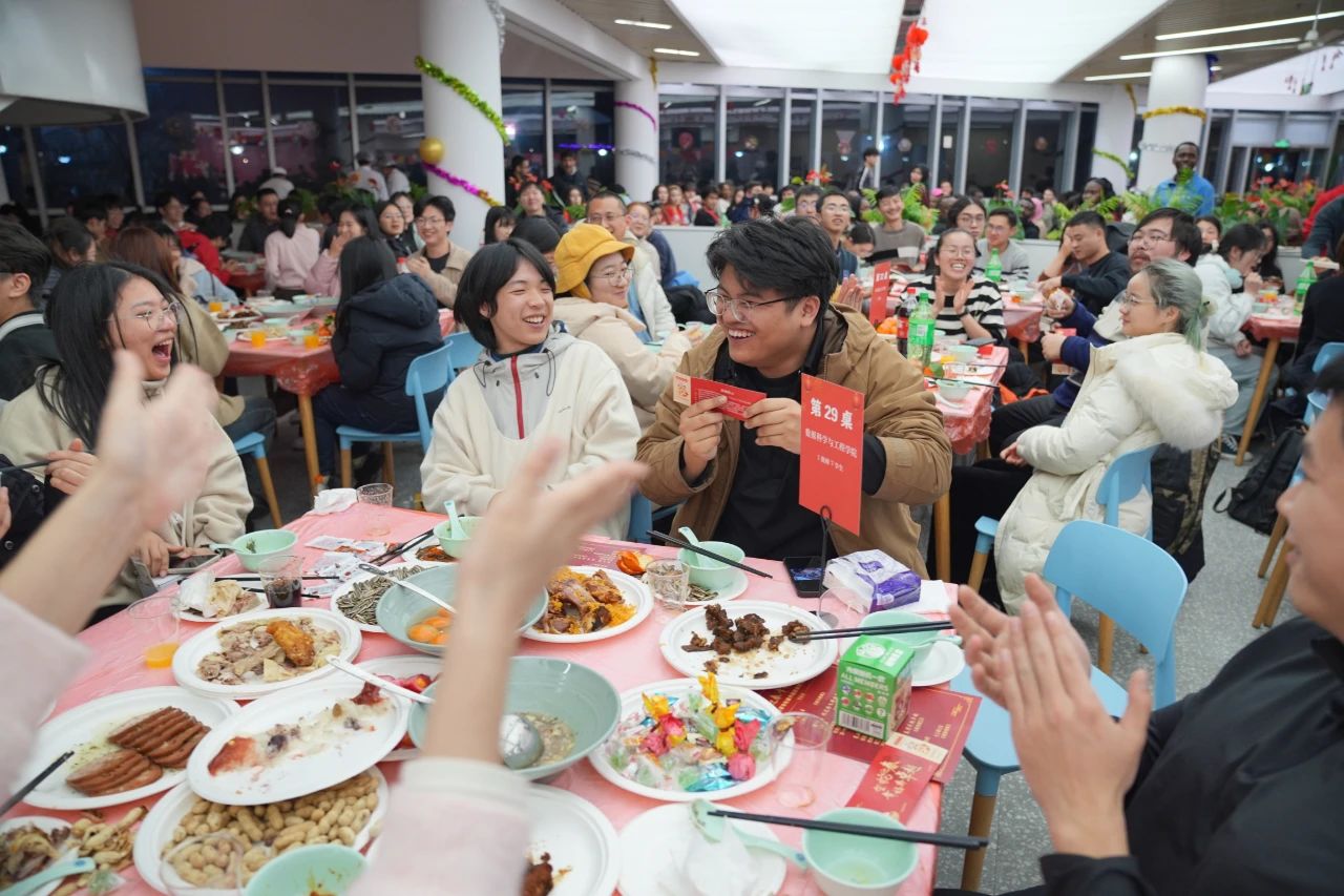 1月24日,閔行校區夏雨廳張燈結彩、暖意融融,華東師大2025年師生同樂會在這里舉行。900余名中外留校學生、教職員工歡聚一堂,共同見證這場滿載暖意與美食交融的歡聚時刻。