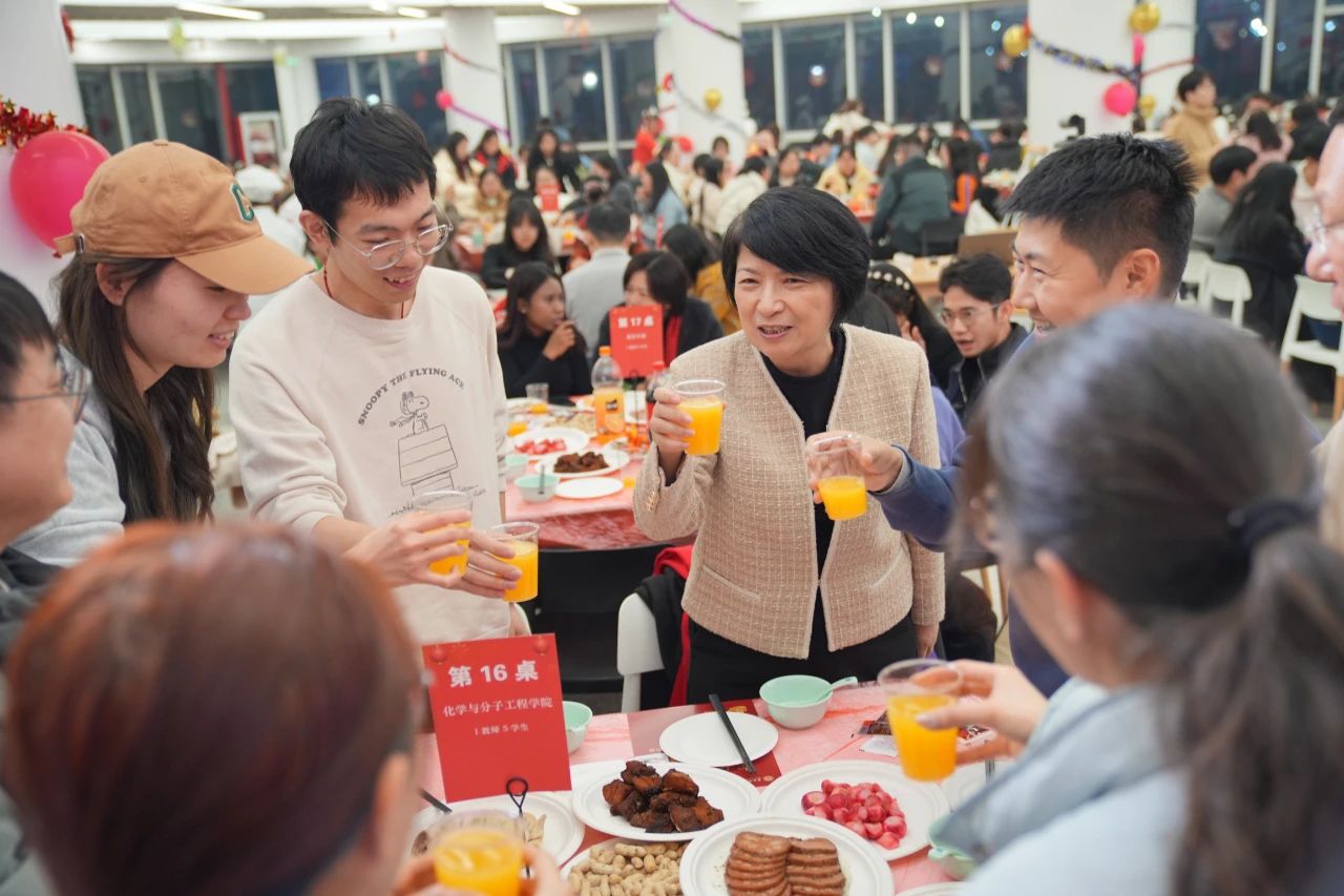 活動期間,校領導紛紛走到同學們身邊,和全體師生員工親切互動、舉杯同慶,共迎新春的到來,共話師大美好的明天。
