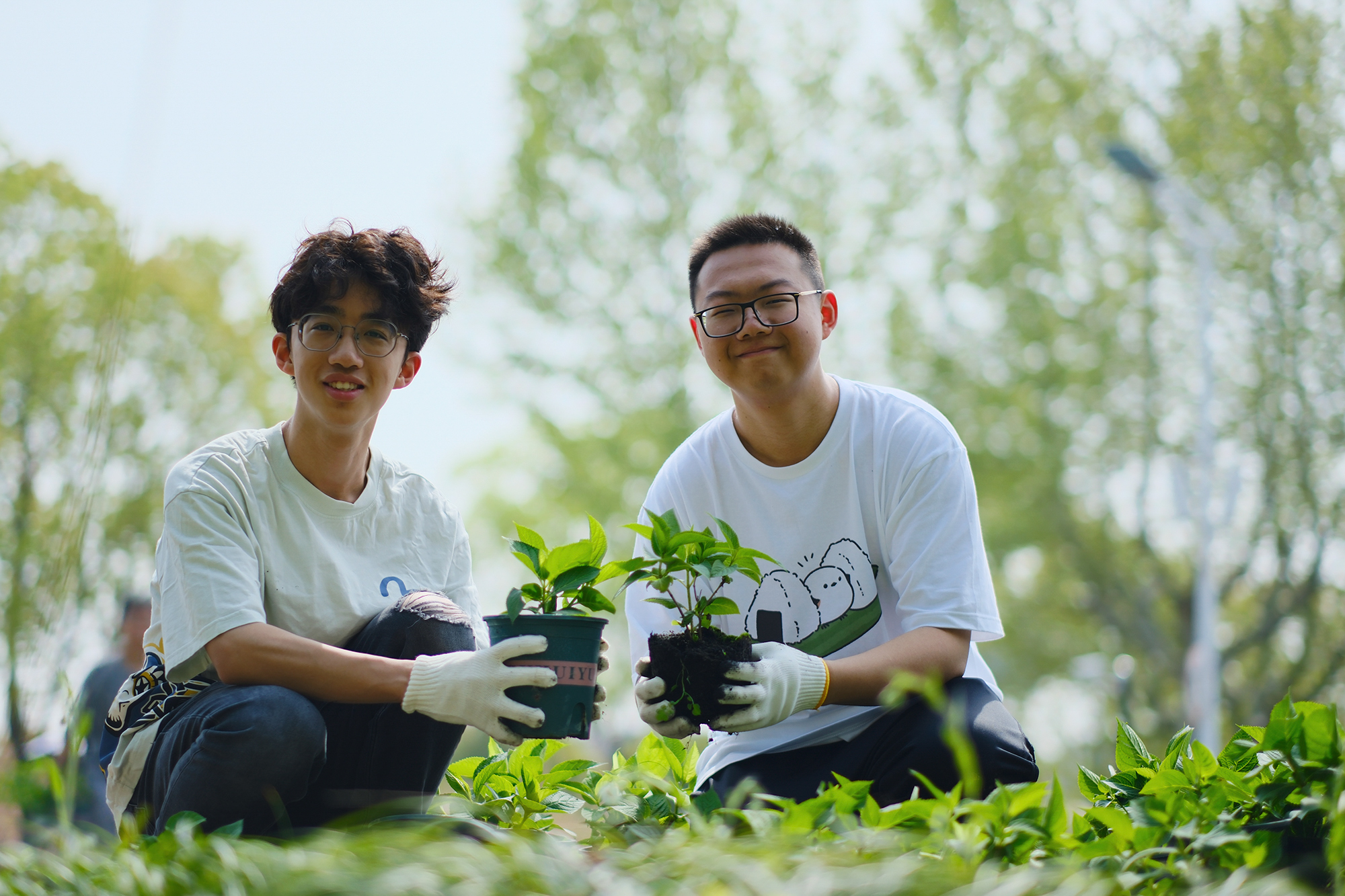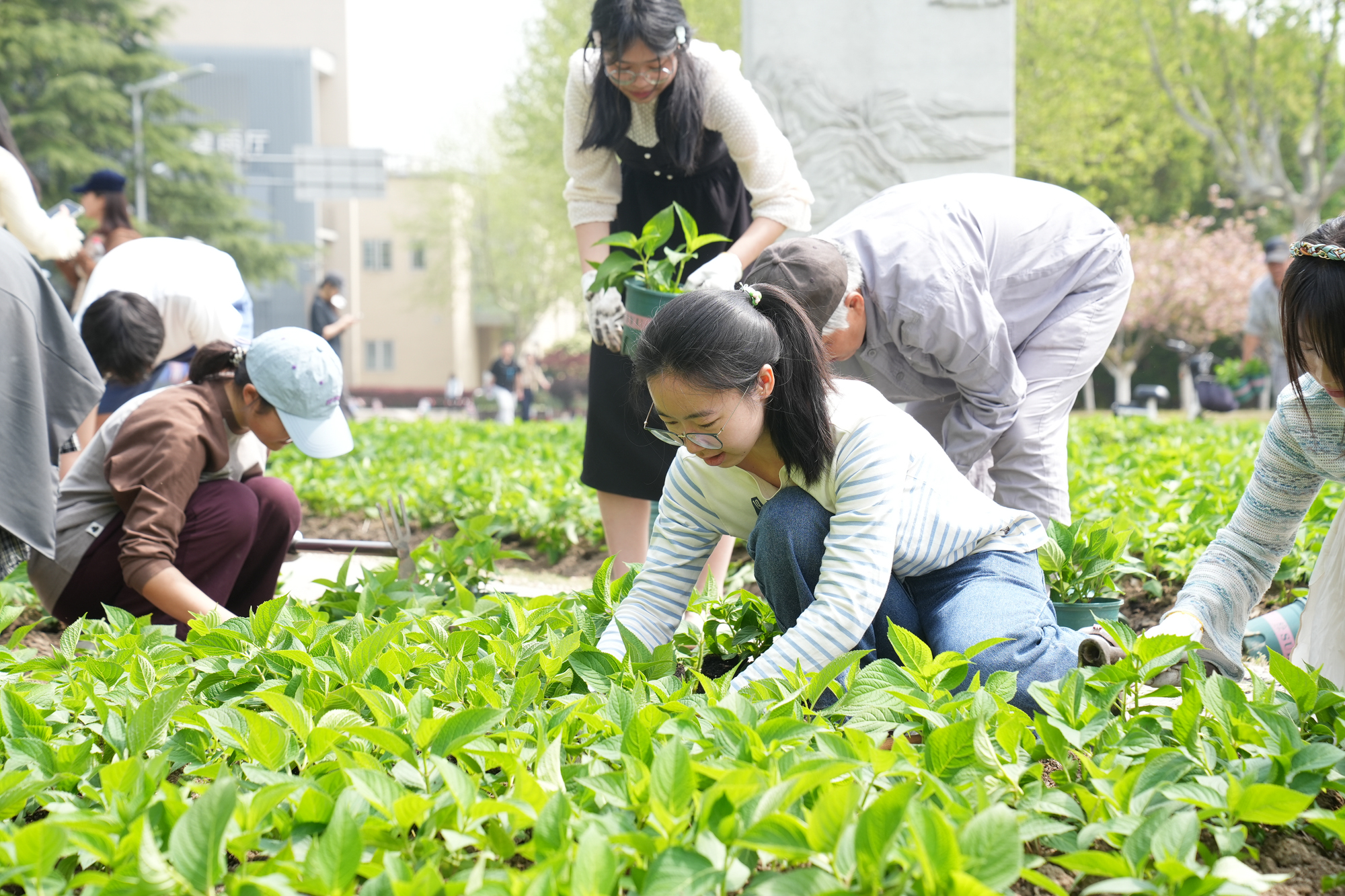 4月10日上午,華東師大師生們在后勤保障部綠化師傅的指導下,共同種植畢業花。鏟土、脫盆、置苗、壓實,為即將到來的畢業季打造一片美輪美奐的“畢業花海”景觀。