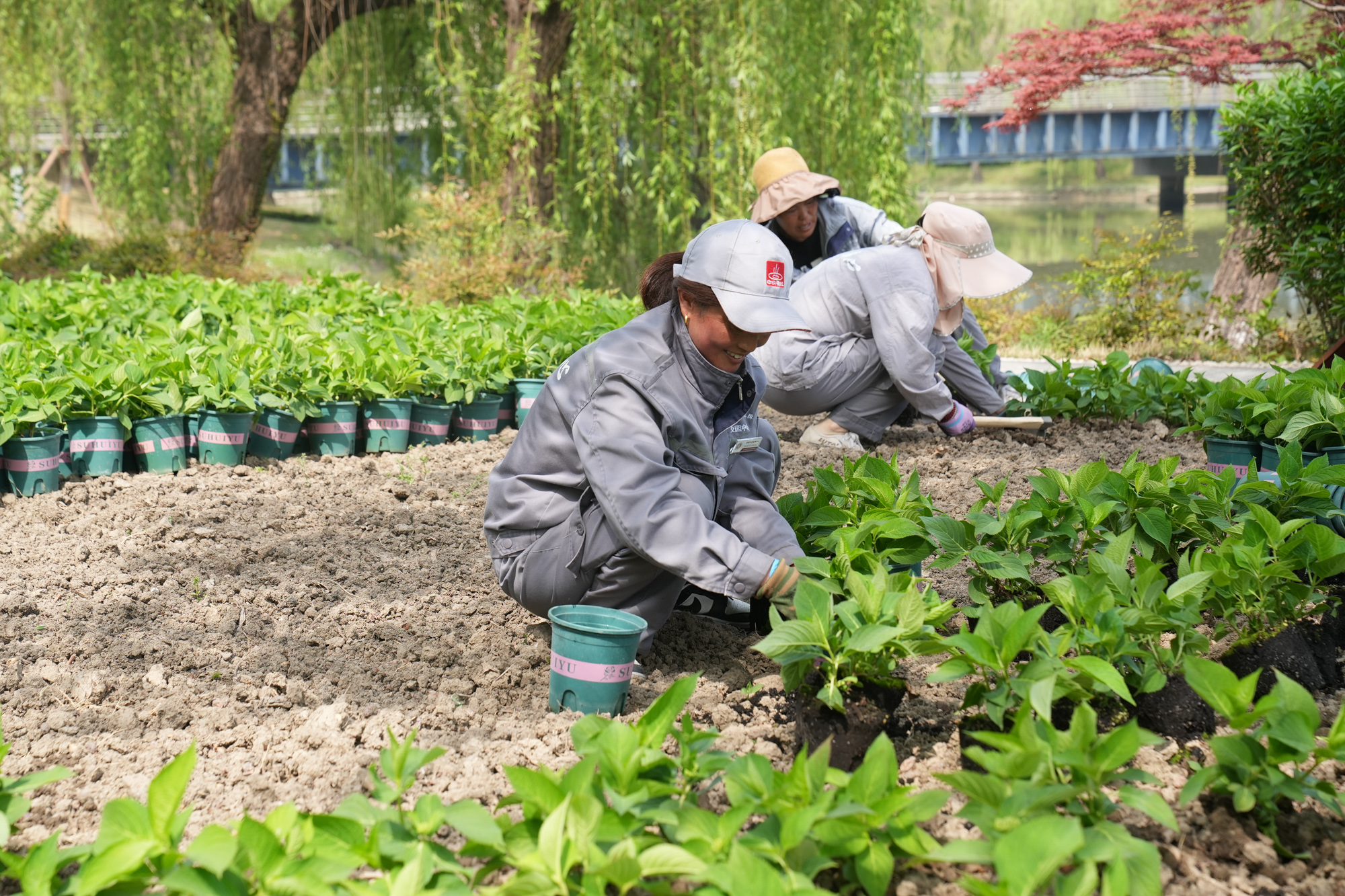 今年將種植28540株繡球花,種植面積達1500平方米,預計在五月下旬迎來盛花期。屆時,成片的繡球花將如海潮般綿延鋪展,成為每一位2025屆畢業生的“專屬紀念”。