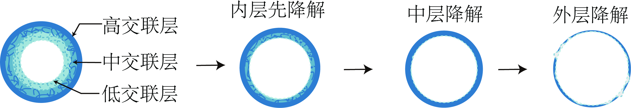 中空水凝膠管支架在體內(nèi)逐步降解示意圖