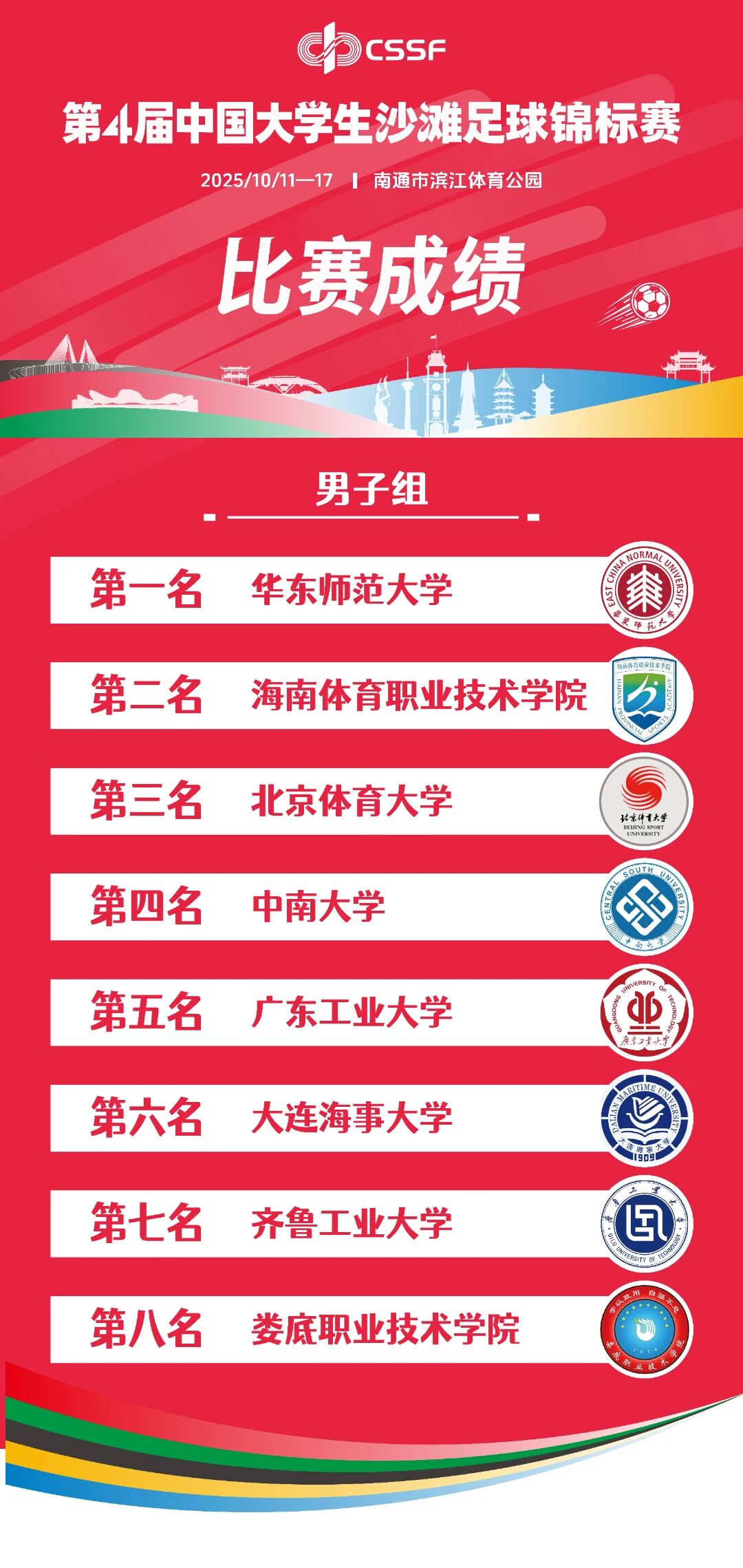 憑借此次奪冠的優(yōu)異表現(xiàn),華東師范大學男子足球隊成功獲得了代表中國參加2026年在葡萄牙舉辦的世界大學生沙灘運動會足球項目比賽的資格。