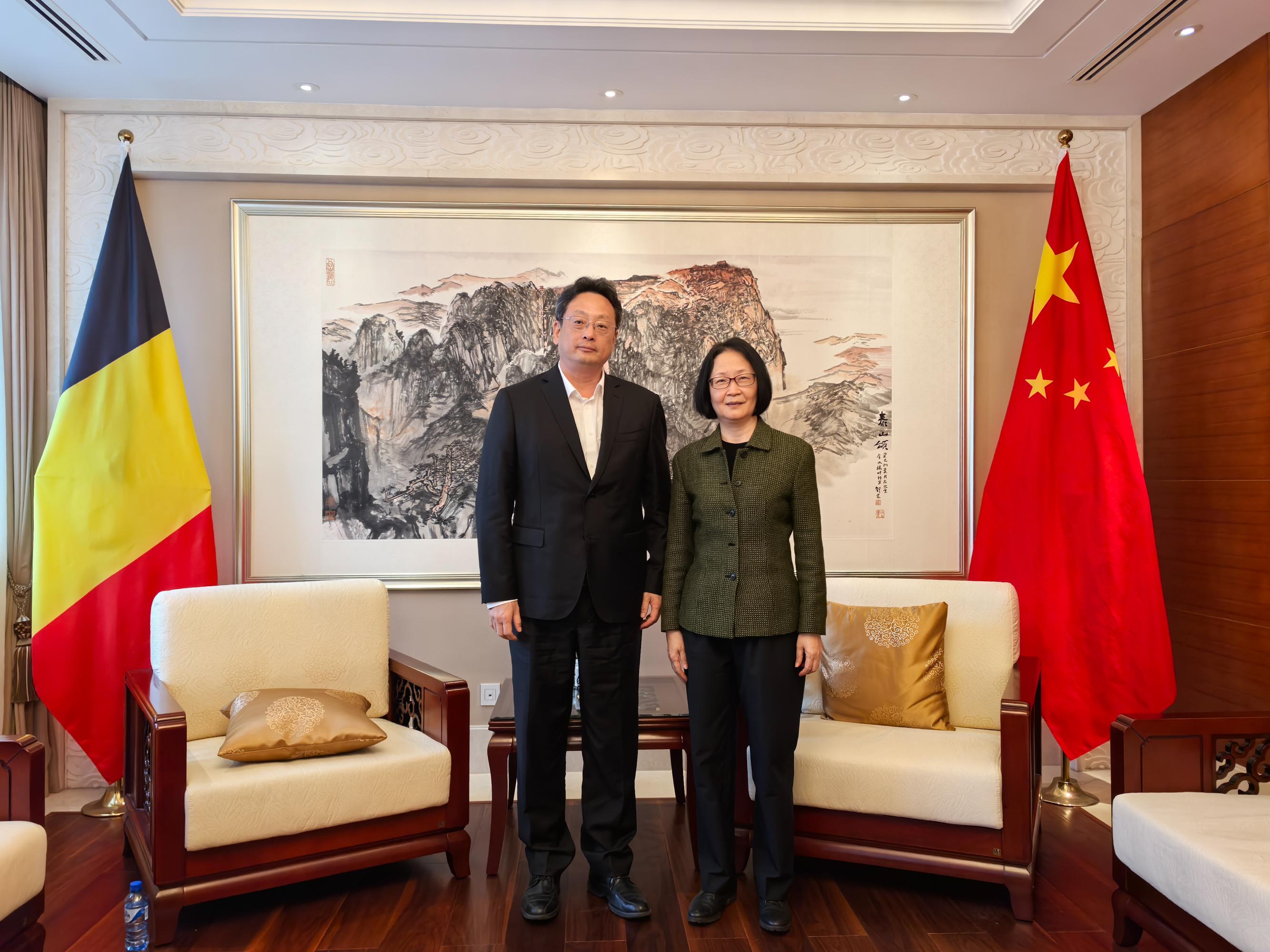 訪比期間,代表團拜會中國駐比利時大使館,與謝亞靜參贊親切交流,匯報學校國際合作進展。