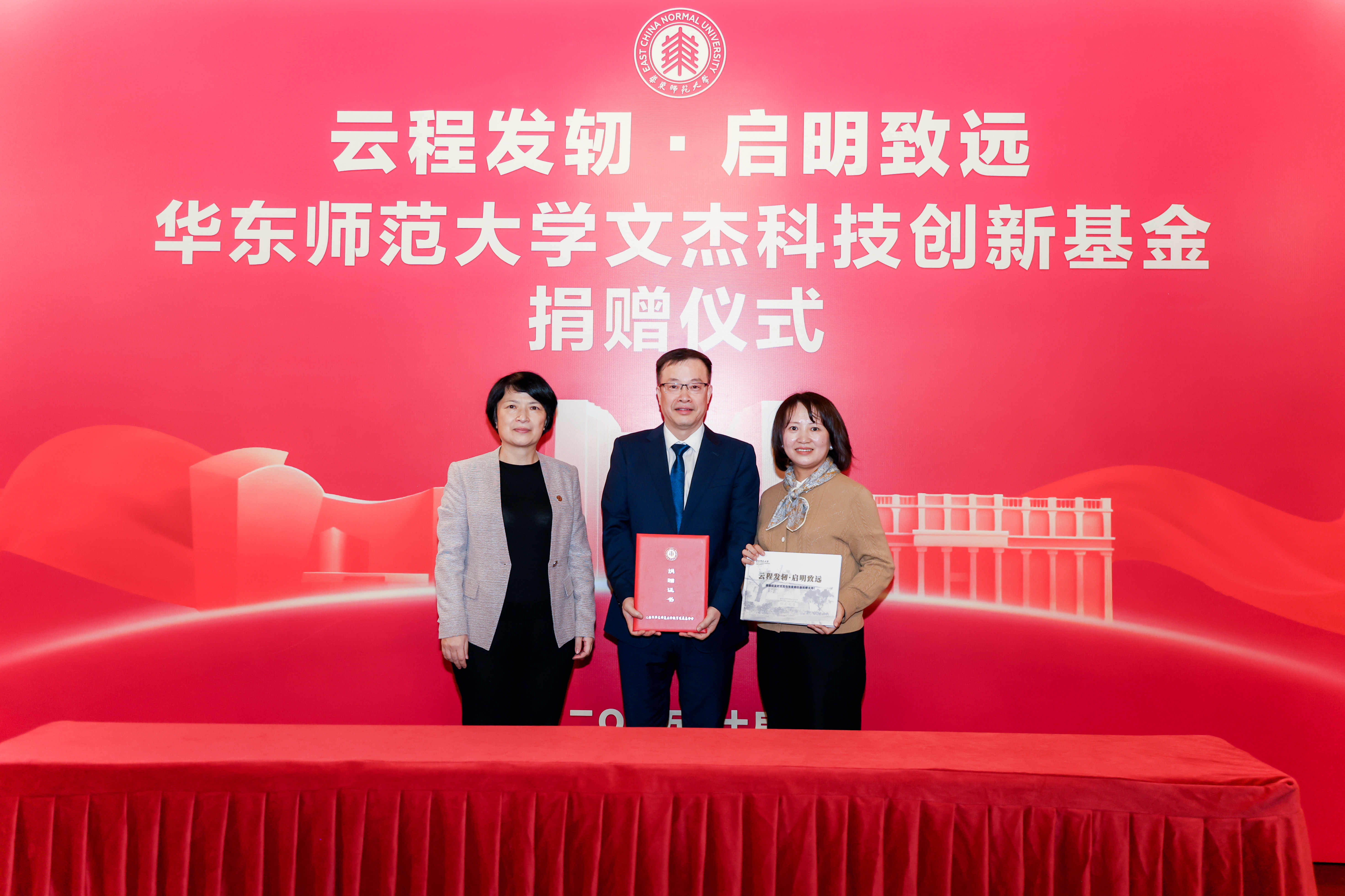 華東師大黨委書記梅兵與捐贈人華東師大1988級計算機系校友葉文杰(中)、張星明女士(左)