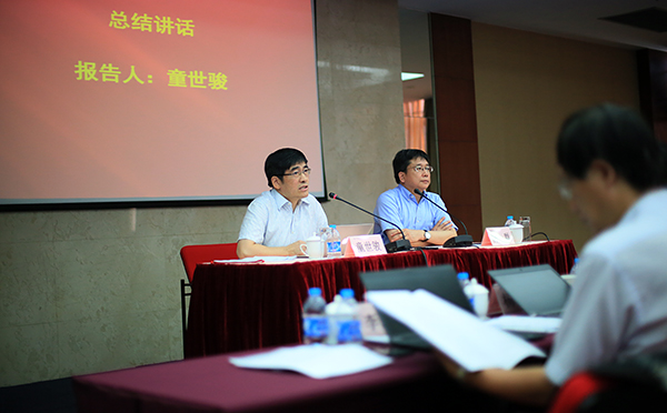 最后,校黨委書記童世駿從黨的建設(shè)、發(fā)展目標(biāo)、發(fā)展路徑和工作動力四個(gè)方面作了總結(jié)講話,校長陳群主持會議。就黨的建設(shè)而言,童世駿指出,應(yīng)該從落實(shí)中央“四個(gè)全面”戰(zhàn)略部署的高度來加強(qiáng)黨的建設(shè),實(shí)現(xiàn)維護(hù)辦學(xué)政治前提與發(fā)揮辦學(xué)政治優(yōu)勢的有機(jī)結(jié)合,通過群眾路線教育和“三嚴(yán)三實(shí)”教育來進(jìn)一步加強(qiáng)基層黨組織建設(shè),充分發(fā)揮各級黨組織的戰(zhàn)斗堡壘作用和黨員干部的先鋒模范作用,為學(xué)校新一輪改革發(fā)展提供政治保障和堅(jiān)強(qiáng)支撐。就發(fā)展目標(biāo)而言,童世駿認(rèn)為,“十三五”結(jié)束的時(shí)候,學(xué)校中長期規(guī)劃和十二屆黨代會報(bào)告中確定的目標(biāo)就應(yīng)該實(shí)現(xiàn),因此我們在制定“十三五”規(guī)劃時(shí)對2020年的奮斗目標(biāo)要有更明確的表述。我們強(qiáng)調(diào)完成向綜合性研究型大學(xué)的轉(zhuǎn)型,不是為了削弱教師教育和教育研究的傳統(tǒng)優(yōu)勢,而恰恰是要為提升這種優(yōu)勢提供更加有力的綜合實(shí)力支持;我們希望對“世界知名”做更廣義的理解:經(jīng)過我們的努力,不僅學(xué)校的綜合實(shí)力更加知名,而且學(xué)校的學(xué)科特色和學(xué)科優(yōu)勢也更加知名。就發(fā)展路徑而言,童世駿指出,我們的工作不僅應(yīng)該是目標(biāo)導(dǎo)向的,而且應(yīng)該是問題導(dǎo)向的,而發(fā)展路徑的選擇就是要采取實(shí)際措施來解決存在的問題和弱點(diǎn)。我們在以前強(qiáng)調(diào)國際化和學(xué)科交叉融合的基礎(chǔ)上,把信息化提到更加重要的位置上,希望我們的學(xué)術(shù)和管理、教學(xué)和科研、教師能力和學(xué)生素質(zhì)都能夠?qū)崒?shí)在在地體現(xiàn)出實(shí)施這種發(fā)展戰(zhàn)略的成果。為此,這些戰(zhàn)略就不能停留在口號上,而應(yīng)該體現(xiàn)為具體措施和實(shí)際行動。另外,我們還要在學(xué)科布局上更加重視提高資源利用效率;在落實(shí)任務(wù)時(shí)更加注重發(fā)揮團(tuán)隊(duì)優(yōu)勢;在注重教學(xué)科研主戰(zhàn)場的同時(shí)在學(xué)校工作的各個(gè)其他領(lǐng)域也追求卓越。童世駿最后結(jié)合剛剛結(jié)束的實(shí)體院系整體考核談了工作動力的問題,認(rèn)為考核的目的就是要通過展示成績、發(fā)現(xiàn)差距來加強(qiáng)干部和教師的工作動力、提高各個(gè)院系的工作活力。童世駿認(rèn)為,從考核中可以更加清楚地看到,我們要進(jìn)一步發(fā)揮黨政齊心、干群合力的政治優(yōu)勢,從加強(qiáng)黨風(fēng)廉政建設(shè)、落實(shí)巡視整改措施當(dāng)中,去尋找用黨風(fēng)政風(fēng)引領(lǐng)教風(fēng)學(xué)風(fēng)的寶貴資源。童世駿強(qiáng)調(diào),除了要通過學(xué)習(xí)教育活動進(jìn)一步提高理想信念、通過完善制度和細(xì)化管理進(jìn)一步強(qiáng)化利益激勵(lì)以外,我們還要通過宣傳文化工作來進(jìn)一步發(fā)揮工作倫理、崗位興趣和集體榮譽(yù)感的作用,進(jìn)而解決對相當(dāng)一部分人來說“理想太高而利益太少”的問題。