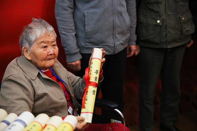 早在今年7月,檔案館組織了5人小組專門整理遺留下來的畢業證書。經過梳理,并在社會媒體的幫助下,學校陸續找到了一批校友。儀式上,1950屆教育系陳金華校友、1949屆教育系蔣道福校友,與1950屆數理系校友胡和生院士、1949屆經濟系陸亮等9位校友的家屬代表,先后從副校長范軍的手中接過了一張張遲到的畢業證書。
