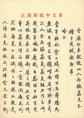 民國時期的教授比的是讀了多少書,而不是出了多少書。在游國恩、劉永濟、劉博平諸多名師的影響下,守仁先生養成了好讀書的習慣,早晨4點即起床讀書。一位文藝理論老師對我說:“胡先生讀書用功是出了名的,你只要隨便問他一位三流的唐朝詩人有哪些作品,他都會如數家珍地告訴你。”接著他又告誡我,“做學問要有新觀點,不能光靠多讀書。搞文學研究一定要學好文藝理論,否則拿不出新的觀點。胡先生就是吃了這個虧。”此后我讀了一些文藝理論方面的書,感到要學好文藝理論,還是離不開對文藝作品的理解。文藝作品越熟悉,對文藝理論的感悟也就越深刻。