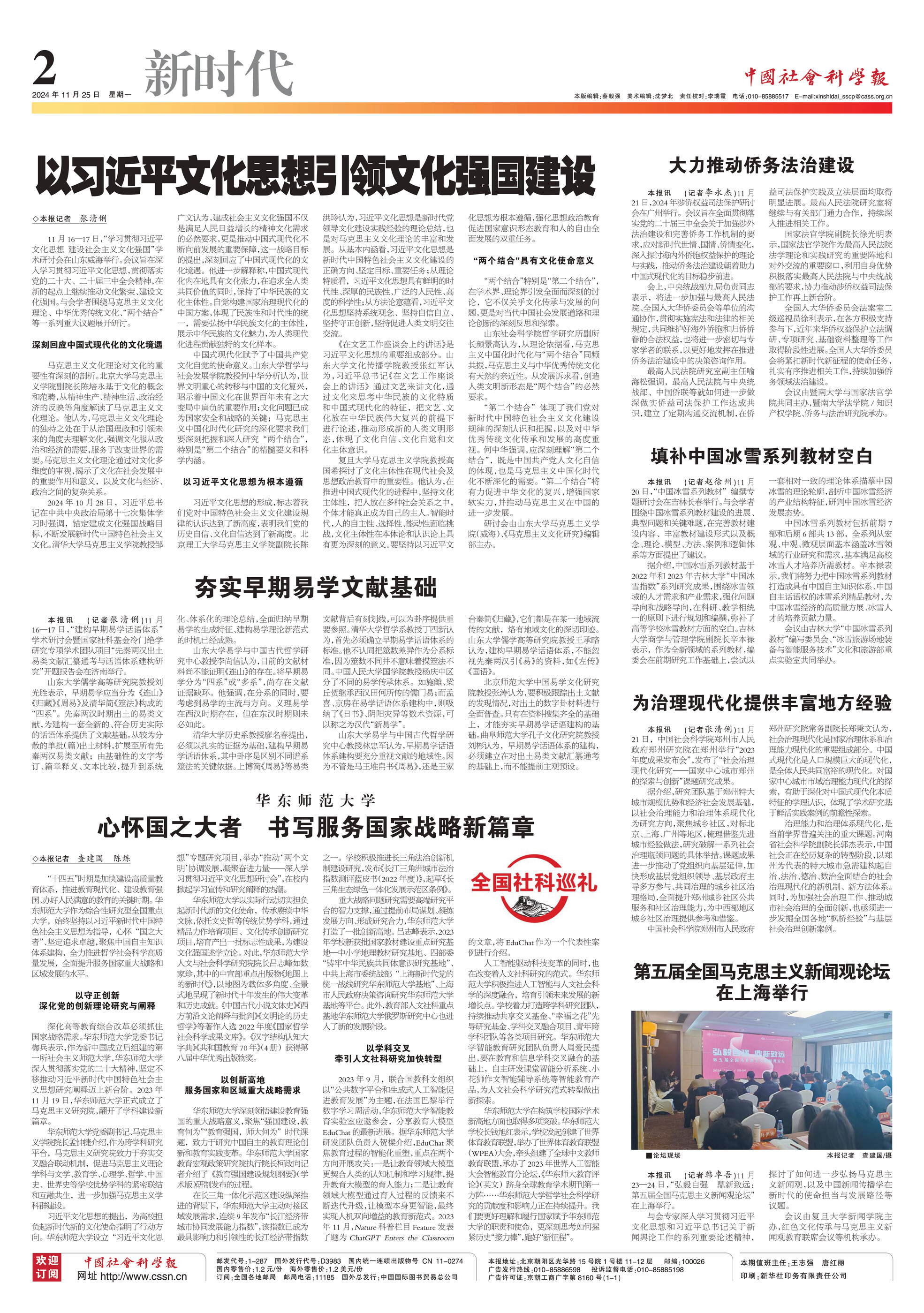 習近平文化思想的提出,為高校擔負起新時代新的文化使命指明了行動方向。華東師范大學設立“習近平文化思想”專題研究項目,舉辦“推動‘兩個文明’協調發展,凝聚奮進力量——深入學習貫徹習近平文化思想研討會”,在校內掀起學習宣傳和研究闡釋的熱潮。