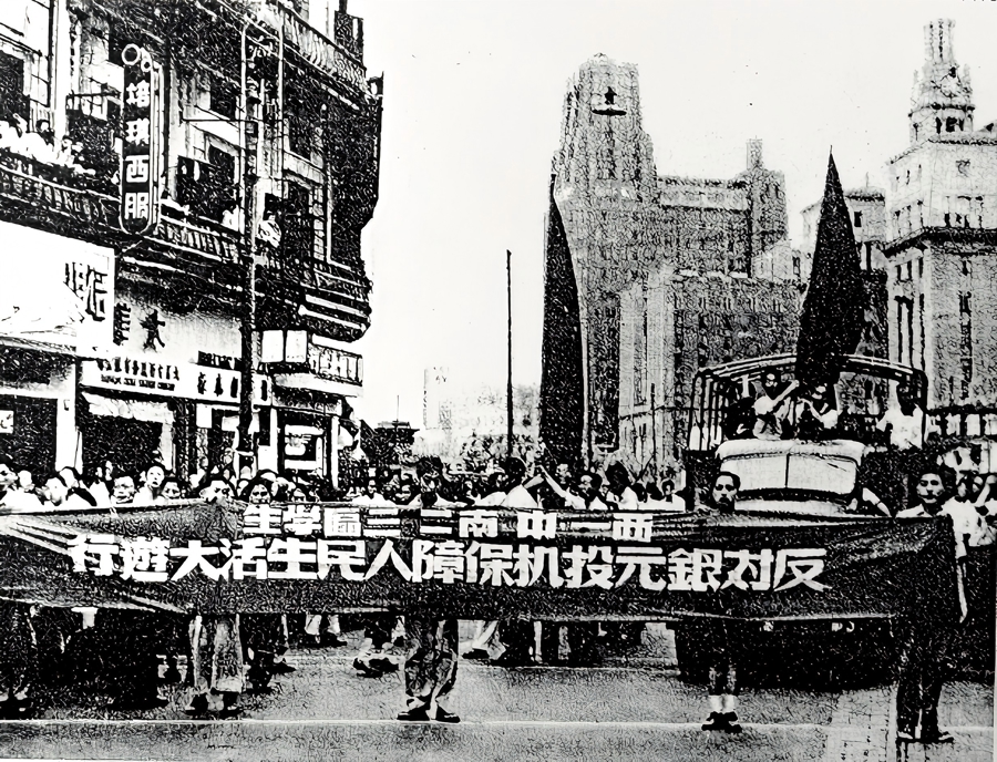 1949年6月10日,上海市軍管會查封上海金融投機的總指揮部——證券大樓。第二天,上海學(xué)生舉行反對銀圓投機、保障人民生活大游行。