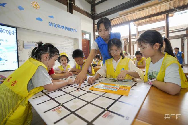 福建省福州市鼓樓區安泰街道的一家科普教育基地,科技志愿者陪同孩子們體驗科技模型裝置。謝貴明攝/光明圖片