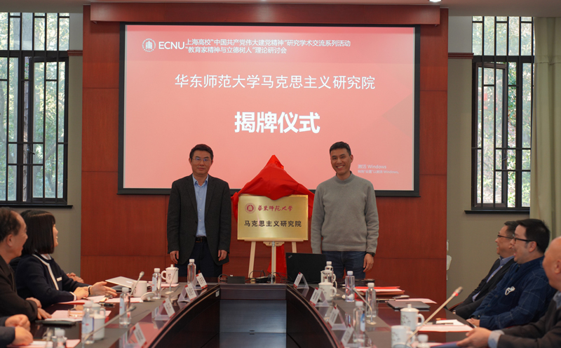會上舉行了華東師范大學馬克思主義研究院成立儀式。閔輝、孟鐘捷共同為馬研院揭牌。上海市教衛工作黨委宣傳處(哲社辦)處長耿紹寧、華東師范大學馬克思主義學院黨委書記趙正橋為馬研院特聘研究員頒發聘書。