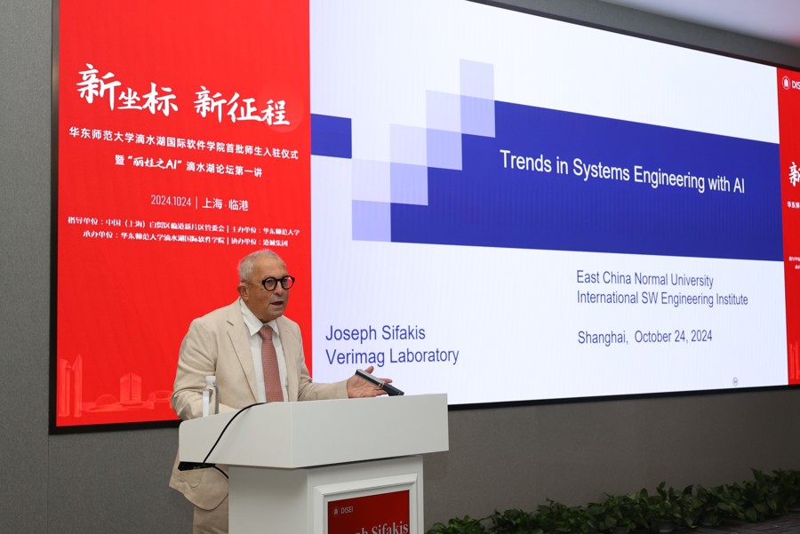 在頂科論壇開幕日之際,位于臨港新片區的華東師范大學滴水湖國際軟件學院迎來了一張張年輕的面孔,51名教師和165名本碩博學生來到這座充滿活力、激勵創新的未來之城,共同開啟嶄新的學習和研究之旅。入駐后,滴水湖國際軟件學院的首批師生就共同參加了“麗娃之AI”滴水湖論壇(第一講)。作為中國科學院外籍院士、華東師范大學榮譽教授,約瑟夫·斯發基斯為師生們帶來報告《系統工程與AI結合的趨勢(Trends in Systems Engineering with AI)》。