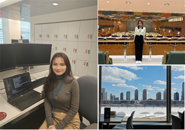 軟件工程學院2024級研究生姜瑩穎的實習崗位,也在美國紐約的聯合國全球傳播部。本科畢業的暑假,她在學校的推送中看到了聯合國招聘實習生的消息。全球傳播部需要一個掌握數據處理技能的實習生,而這份工作與她剛結束的實習經歷不謀而合。
