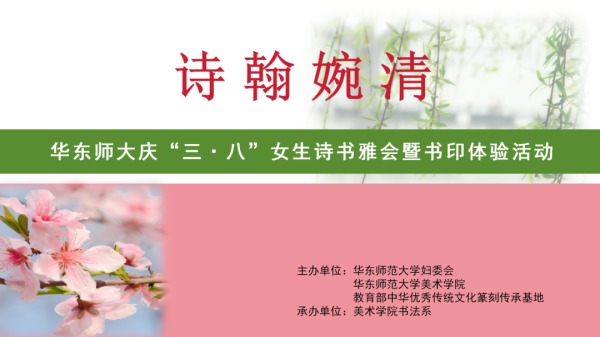來源:華東師大篆刻傳承基地(下同) 【參展作者名錄】 田桂榮 陳淼華 李 玲 韓瀟藝 張 彤 董舒婷 張靜怡 程羽瑄 呂明姝 陳 蘊 王 娟 曹浦家 許 珂 陳鳴賽 李加紅 林邑錚 凌士茹 彭綺夢 彭思凝 鮑柯依 羅絲樂 黃樂瑤 朱丁丁 虞一鳴圖說:展廳現場 為了弘揚中華優秀傳統文化,慶祝三八婦女節,踐行大學美育,彰顯女性人文氣質,由華東師范大學婦委會、華東師范大學美術學院、教育部中華優秀傳統...