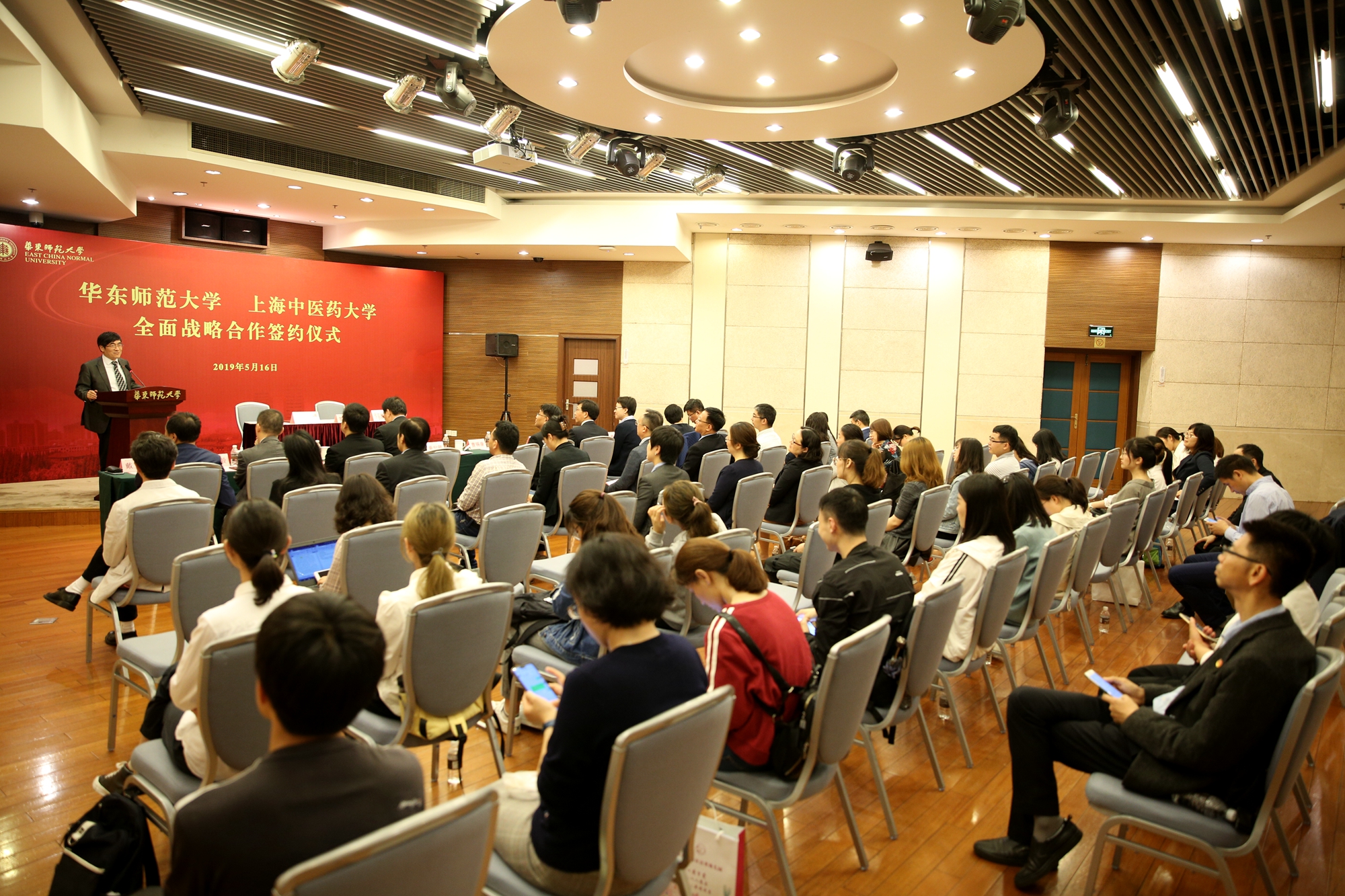 華東師范大學與上海中醫藥大學簽約儀式舉行華東師大校長錢旭紅和上海中醫藥大學校長徐建光代表雙方簽署兩校全面戰略合作框架協議華東師大副校長戴立益和上海中醫藥大學副校長胡鴻毅代表兩校簽署本科醫學專業人才培養...
